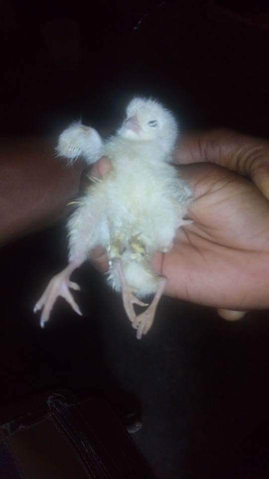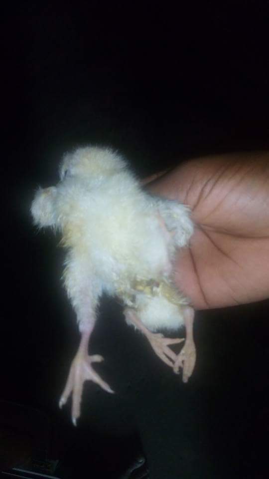 Out of over 100 chicks purchased, this chick is the only one created uniquely. It has four legs, opposing the normal two legs we used to know. A bird having four legs is usually caused by a Mutation in the genetic make-up of the bird. This condition doesn’t reduce the nutritional quality of the bird; in fact, you have two extra legs to enjoy…lol