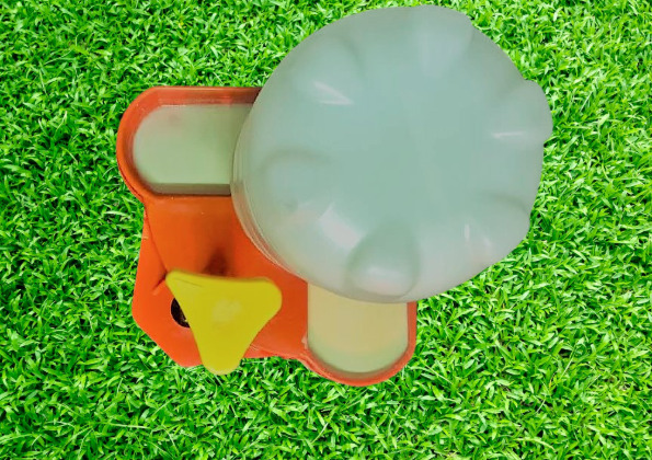 Piglet Milk Feeder is a unique device that provides a continuous flow of liquid milk to a feeding trough. The device consists of a translucent, graduated liquid reservoir and a hose connection to the milking unit. Milk is pumped from the storage tank to the Piglet Milk Feeder, where it is stored in a reservoir until piglets begin to drink. As piglets drink, air is drawn into the device and more milk flows out through small vent holes on each side of the reservoir for them to consume. The Piglet Milk Feeder requires no priming and automatically shuts off when air pressure builds up in the system due to new milk added or when all piglets stop drinking and there is plenty of milk left in the reservoir.